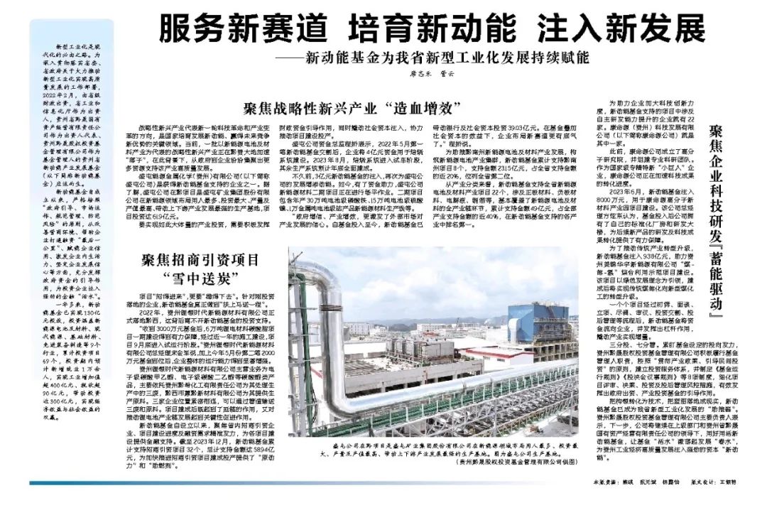 新動(dòng)能基金助力我省產(chǎn)業(yè)集群式發(fā)展【貴州日?qǐng)?bào)】